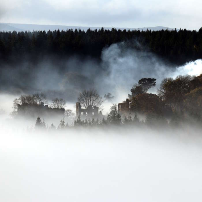 Historic England Extensive ruins of country house. Built between 1820/30 for the Honourable Newton Fellowes; architect, Thomas Lee of Barnstaple; abandoned 1911. Squared blocks of local iron stone with granite ashlar dressings and some Hatherleigh stone detail; many interior walls and stacks of brick; roofs now completely gone. Much of the building has collapsed and therefore the plan can only be appreciated in general. The house was conceived on a grand scale, comprising an irregular and rambling complex of buildings. It faced south-west with the main block at the right (south-east) end, apparently 3 rooms wide and 3 deep. The shell of this survives. Another block along the left side was recessed from the front and 2 rooms deep. It has largely collapsed.