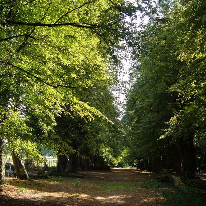 The Poltimore gardens and woodlands cover about 30 acres, of which 13, including the land on which the House is built, now belong to Poltimore House Trust. Poltimore was recorded as a Deer Park in 1575, and the area surrounding the House is depicted in late 17th and early 18th century drawings as formal gardens with topiary and statuary. The two avenues of limes (one was felled in 1956 and replaced with poplars) date from about 1710, planted to mark the accession of George I. In 1840, George Bampfylde, 1st Baron Poltimore, commissioned James Veitch, son of John Veitch to plant woodlands on the rising ground behind the mansion. The trees planted at Poltimore House include a cork oak with a span of nearly 90ft, a magnificent copper beech 110 ft high near the church end of the lime avenue, two Lucombe oaks, one of whish is 130 ft in height, Turkey, holm and other species of oak. Among the spectacular conifers are six Wellingtonias, one at 135 ft the tallest tree in the garden, a Californian Redwood , Douglas, Spanish, Noble and Caucasian firs, a Monterey pine three Spruces, Monterey, Yellow and Swamp cypresses, yews, maples and some huge cedars. Facing the east front of the House is a great, spreading Japanese red cedar, several specimens of Monkey Puzzle From the viewpoint steps one can look into the the Arboretum with its magnificent trees.