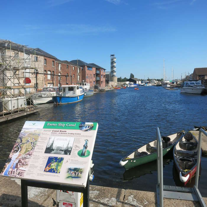 Go Paddling A canal ahead of its time, the Exeter Ship Canal was one of the first artificially built canals in the UK. It dates back to 1566 and links the River Exe at Turf Lock to the Exeter Quay. It was built to bypass weirs that had been erected on the River Exe and so enable goods to reach the port of Exeter, This was originally in barges, or later in ocean-going ships. Following successive enlargements and extensions it reached its present form in the 1830s. This was when the canal basin was also built.