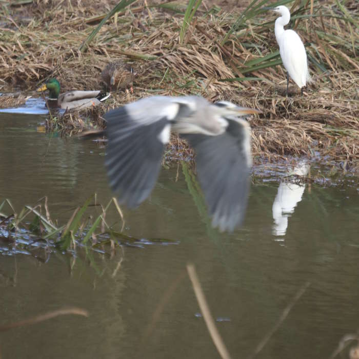 A Grey Heron photo-bombing my shots of this Little Egret on Exeter Flood Relief Channel (Photo: Grant Sherman 2nd Nov 2021)