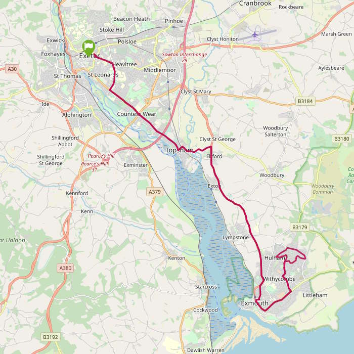 Bus Stops: Brixington Drive (N-bound) - Brixington Jubilee Drive (NE-bound) - Brixington Withycombe Park Drive (NW-bound) - Brixington Broadmead Shops (N-bound) - Withycombe Raleigh Bradham Court (SE-bound) - Exmouth Peacocks (Stop B) - Lympstone Saddlers Arms (NW-bound) - Topsham The Nelson (N-bound) - Wonford R D & E Hospital (N-bound) - Exeter Bus Station